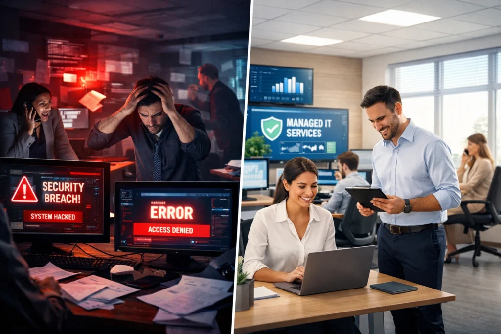 Managed IT services involve outsourcing your IT operations to a third-party provider, to ensure your technology runs smoothly and securely. These services typically include infrastructure management, cybersecurity, helpdesk support, and strategic IT planning. The goal is to provide proactive monitoring and maintenance, addressing potential issues before they escalate into costly problems.